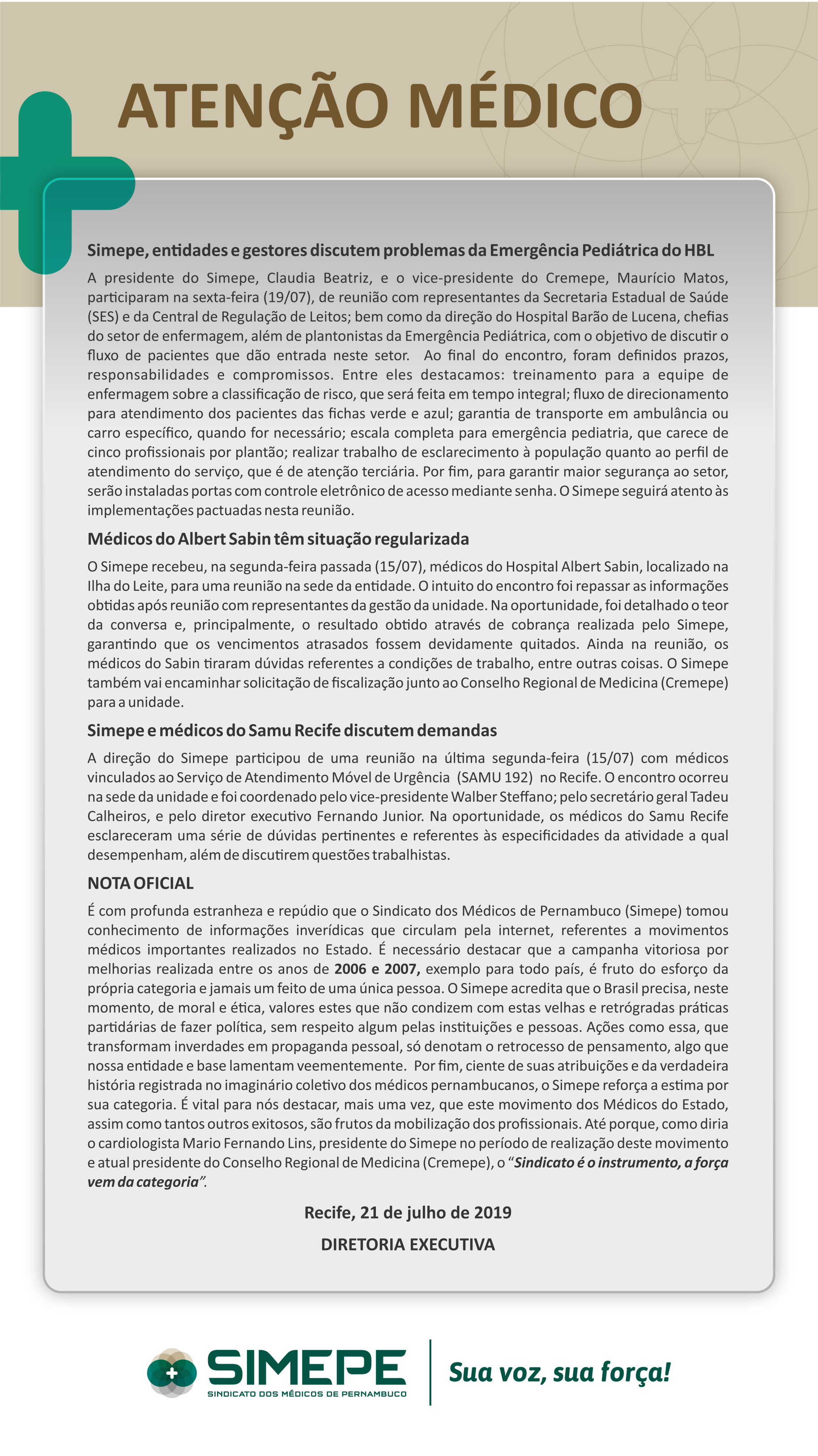Atenção Médico – 21/07/2019