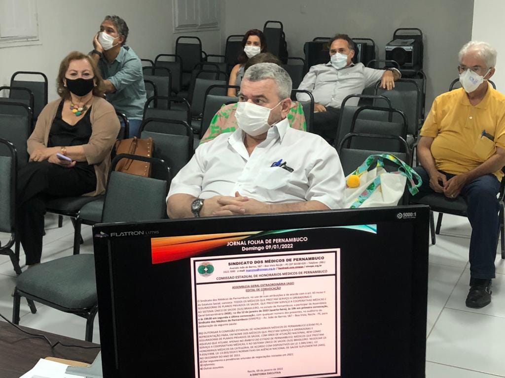 O presidente da Comissão de Honorários Médicos de Pernambuco (CEHM-PE), Mario Fernando Lins reuniu-se em Assembleia Geral Extraordinária (AGE), de forma presencial e On line, na noite da quarta-feira passada (12/01), com todos os médicos que prestam serviço a operadoras e seguradoras de planos privados de saúde, além de cooperativas médicas e ao Sistema Único de Saúde (SUS), em Pernambuco. O presidente da Associação Médica de Pernambuco (AMPE), Bento Bezerra, diretora da AMPE, Sirleide Lira, diretores do Simepe – Malu David e José Tenório e, diretor de defesa profissional da SBOT PE, André Flávio, entre outros representantes de sociedades de especialidades médicas, participaram do encontro.