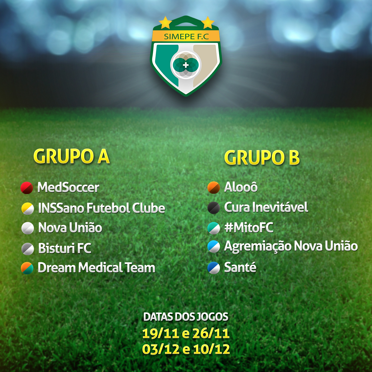 Ao todo, a competição contará com 10 times, que estão divididos em dois grupos – com cinco equipes cada. O sorteio das chaves foi realizado na noite desta quarta-feira (16), em um evento transmitido ao vivo pela página do Simepe no Facebook. Confira a seguir como ficou a disposição das equipes em seus respectivos grupos: