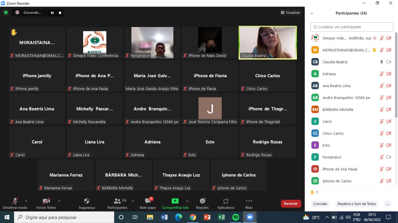 A presidente do Simepe, Claudia Beatriz e integrantes da diretoria se reuniram On-Line, na noite desta quarta-feira, dia 06/04, com os médicos obstetras plantonistas da Maternidade Barros Lima, localizada em Casa Amarela, Zona Norte do Recife. O objetivo do encontro virtual foi discutir a situação caótica dos últimos dias com o número extremamente reduzido de obstetras e o grande volume de atendimentos, além das constantes ameaças que a categoria vêm sofrendo, que culminou com a necessidade de acionar a Polícia Militar, para garantir a retomada dos atendimentos na última terça-feira a noite  (05/04).