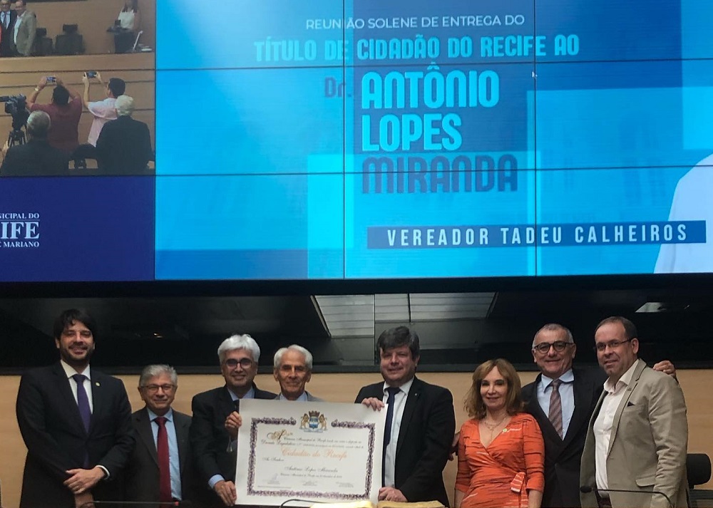 O Sindicato dos Médicos de Pernambuco, representando pelo presidente Walber Stefano, participou nesta terça-feira (20/12), da reunião solene em que a Câmara Municipal do Recife concedeu o título de cidadão recifense ao médico cirurgião Antônio Lopes de Miranda. A homenagem foi proposta pelo vereador e médico, Tadeu Calheiros (Podemos). A solenidade, presidida pelo vereador Zé Neto (PROS), contou com a presença de diretores do Simepe – Eraldo Arraes e Fernando Oliveira – além de conselheiros do Cremepe, familiares, amigos, colegas de trabalho.