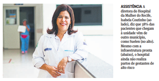 A diretora-geral do HMR, a médica Isabela Coutinho, reconhece que o setor para as gestantes de alto risco precisa abrir, mas também reforça a importância do hospital na assistência às mulheres em gestação de risco habitual (aquela em que, após avaliação pré-natal, não se identifica maiores riscos de complicações para mãe e/ou bebê). “Realizamos uma média de 480 partos por mês. Desses, 26% são cesáreas. Por esse grande volume, podemos garantir que, de alguma forma, contribuímos com o reforço na assistência materno-infantil do Estado. Se essas mulheres não estivessem aqui, estariam onde?”, relata Isabela Coutinho, ao levantar a questão sobre o estrangulamento da rede obstétrica – tema abordado em reportagem publicada no último domingo (16) neste JC.