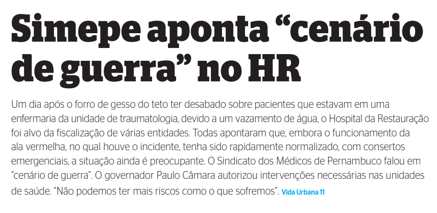 Simepe aponta “cenário de guerra” no HR – Capa do DP