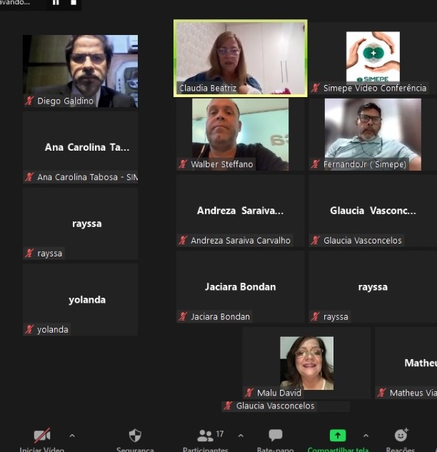 Sob a coordenação da presidente do Simepe, Claudia Beatriz aconteceu na noite desta quinta-feira (24/03), reunião por videoconferência, com os médicos obstetras do Hospital da Mulher do Recife (HMR). O vice-presidente, Walber Steffano e os diretores Ana Carolina Tabosa, Malu David, José Tenório, Rodrigo Rosas e Fernando Junior estiveram presentes, juntamente com o advogado da Defensoria Médica, Diego Galdino.