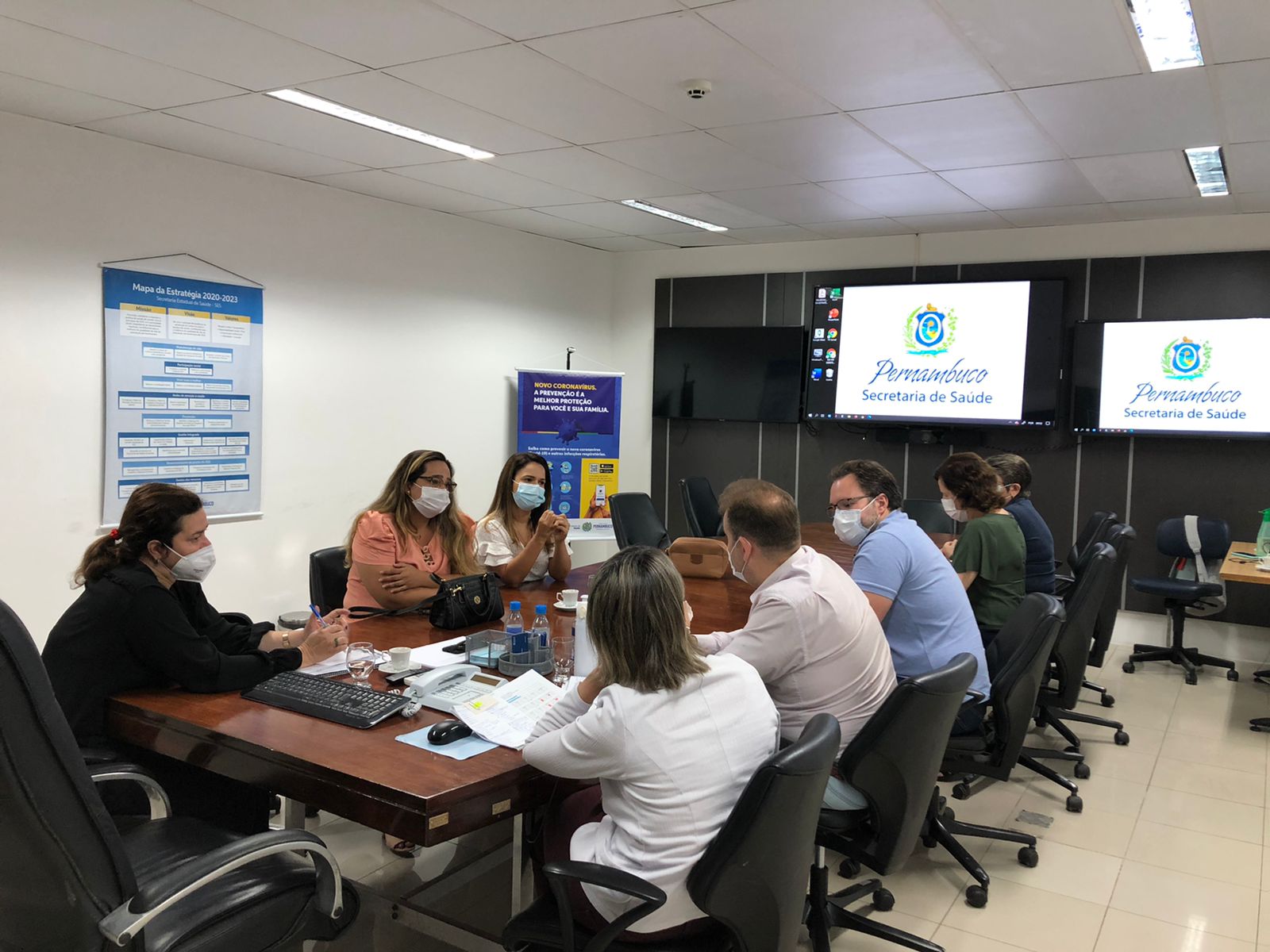 Dando continuidade às discussões sobre os problemas no Hospital da Restauração (HR) e nas Unidades de Pronto Atendimento (UPAs), o vice-presidente do Simepe, Walber Steffano, e o diretor Rodrigo Rosas reuniram-se, na manhã desta quinta-feira (30), com médicas do HR, a secretária executiva de atenção à saúde, Cristina Mota, e sua equipe, no Bongi.
