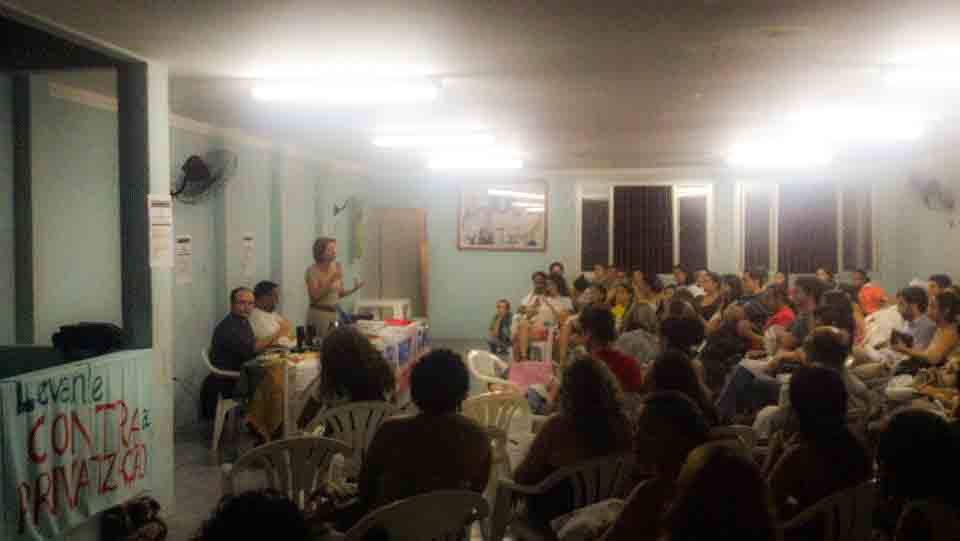 Em sua participação, a professora da Universidade Federal de Alagoas (UFAL), Valéria Correia que fez uma análise das diferentes formas de como o capital está se apropriando da área pública mais precisamente da saúde e também a experiência da Frente Nacional contra a Privatização da Saúde. Atualmente, a Frente Nacional já reúne 16 fóruns estaduais e seis municipais atuando contra formas de desmantelamento do SUS, como a transferência da gestão para as Organizações Sociais (OS), a precarização dos serviços e dos trabalhadores da saúde, e a Empresa Brasileira de Serviços Hospitalares (EBSERH) que está atuando na privatização dos hospitais universitários. Por sua vez, o professor da Universidade de Pernambuco (UPE), Itamar Lajes, uma referência na luta pelo direito à saúde relembrou os momentos históricos de lutas contra o capital privado da saúde no Recife.