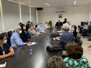 Na manhã desta terça-feira (17), representantes do Sindicato dos Médicos de Pernambuco (Simepe), do Conselho Regional de Medicina de Pernambuco (Cremepe), e gestores de entidades e institutos ligados a saúde, estiveram reunidos com os gestores estaduais da saúde, na sede da Secretaria Estadual de Saúde (SES), na Zona Oeste do Recife, para debater soluções para o período de sazonalidade que tem gerado a alta demanda nas emergências e UTIs pediátricas do estado. Participaram do encontro representando o Simepe, o presidente Walber Steffano, a secretária-geral da entidade, Claudia Beatriz , e o diretor do Simepe, Fernando Oliveira.