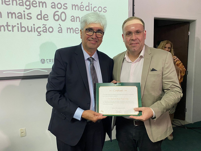 Durante a solenidade também foi entregue o certificado de mérito aos médicos com mais de 60 anos de formação e contribuição à medicina pernambucana; o presidente Walber Steffano entregou alguns desses certificados. Vale ressaltar a exposição fotográfica “Pernambuco e seus encantos mil”, que conta com obras assinadas por médicos pernambucanos; alguns foram premiados por meio de concurso realizado pelo Cremepe. Na ocasião, também foi ministrada uma aula sobre fotografia e medicina pelo médico infectologista, Demétrius Montenegro. Com rico e histórico acervo fotográfico, o médico apresentou cinco janelas na linha do tempo que focalizam acontecimentos marcantes relacionados ao HIV. Ao final, homenageou as vítimas do vírus, com imagens impactantes, tendo como pano de fundo a música “The Show Must Go On”, de autoria da banda inglesa Queen, interpretada por Freddie Mercury, lançada em 1991, mesmo ano em que faleceu por complicações relacionadas à AIDS. No encerramento da solenidade, foi servido um coquetel aos presentes.