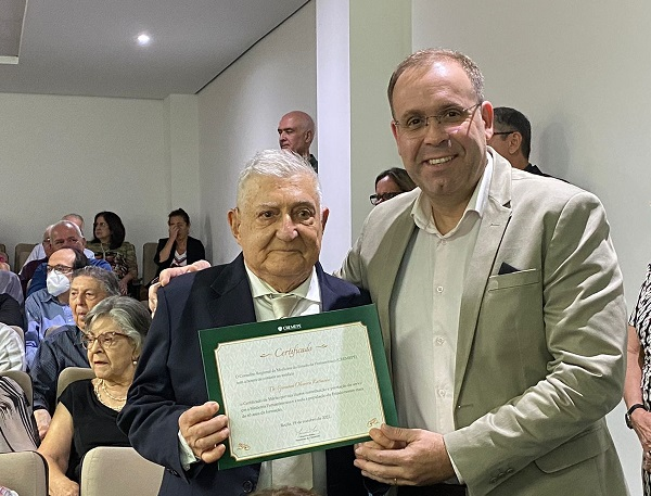 O Sindicato dos Médicos de Pernambuco (Simepe), representando pelo presidente Walber Steffano, participou na noite desta quarta-feira (19) da solenidade promovida pelo Conselho Regional de Medicina de Pernambuco (Cremepe), em comemoração ao Dia do Médico. Após dois anos de combate à pandemia de Covid-19, a autarquia homenageou os profissionais que atuaram na linha de frente pernambucana, com uma nova narrativa de celebração cultural, destacando a arte com literatura, fotografia e poesia, além do reconhecimento aos médicos que se formaram em medicina há mais de 60 anos. O evento comemorativo ocorreu na sede do Conselho, no Espinheiro. Compuseram a mesa: os presidentes Maurício Matos (Cremepe), Walber Steffano (Simepe); Hildo Azevedo (APM), Bento Bezerra (AMPE) e Tadeu Calheiros (FMB), além do representante da SES, Humberto Antunes.